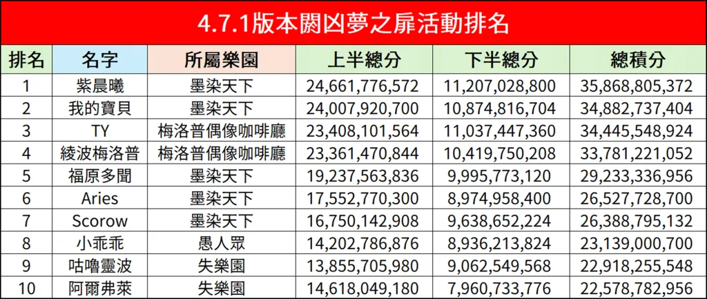 我們會在12月25日【閼凶夢之扉】的第二次結算時,根據結算時【兩次會戰相加】的【個人總分】進行排名,並發放額外福利: